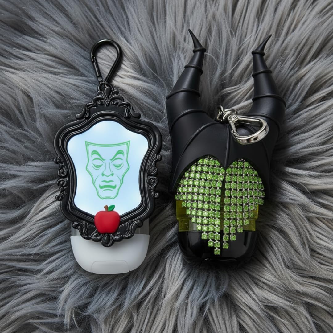Bath & Body Works Disney Villains PocketBac Holder 2-Pack – Maleficent & Evil Queen – Glow-in-the-Dark & Light-Up Silicone Travel Clips – Novelty Bag Charms & Keychains (Accessory Only)